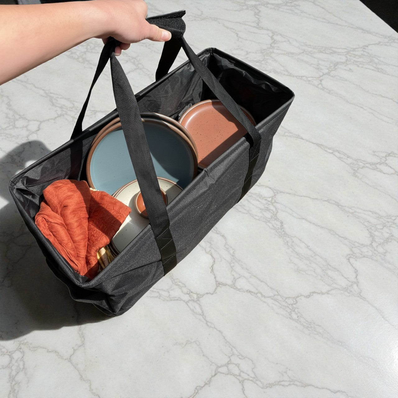 Lightly rinse off any remaining food and drink and pack up your rented items in the Hostess tote. No need to fuss; we do the deep cleaning for you!
